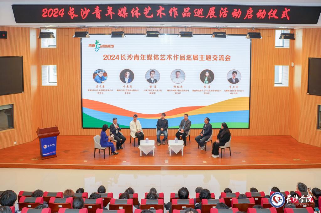 现场,与会领导嘉宾共同点亮“媒体艺术之光”,启动“青春长沙 创意高地”2024长沙青年媒体艺术作品巡展活动。在长沙学院巡展专场中,青年、艺术家们用一幅幅作品展现长沙作为世界“媒体艺术之都”的独特魅力。