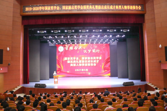 5月20日晚,长沙学院2019-2020学年国家奖学金、国家励志奖学金颁奖典礼暨励志成长成才典型人物事迹报告会在学生活动中心大礼堂隆重举行。长沙学院副校长祝磊,党委委员、组织统战部部长何利华,校关工委常务副主任杨兴龙、相关职能部门负责人及各学院党总支书记、副书记、学工办主任、资助专干出席典礼,各学院共600余名学生代表参加典礼。