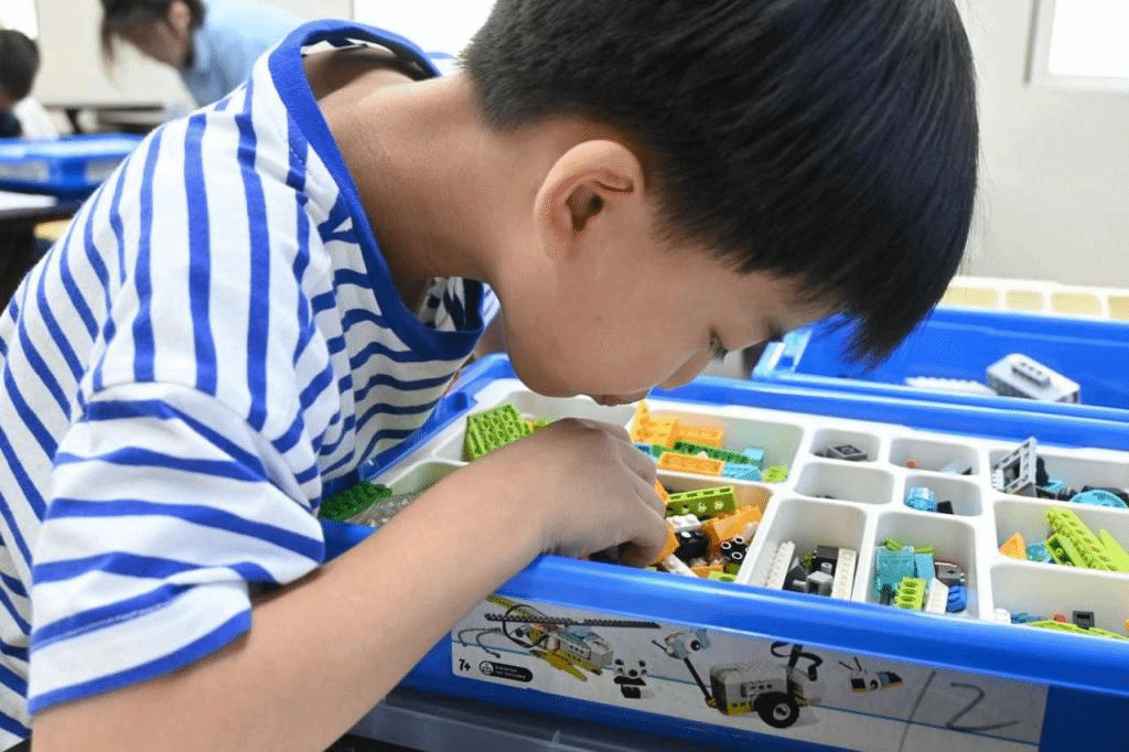 七彩假期课堂上,孩子们聚精会神,看着老师们表演“魔法”。“不是我们真的会魔法,实际上,Wedo平台的乐高积木能够实现人机交互,根据想象拼搭出场景、动物、形状等丰富有趣的内容,加上智能设备连接蓝牙,积木具备低级机器人的运动功能,这就是老师们的魔法。”项目负责人蒋恺晨一边给学生演示,一边解释人机交互的原理。
