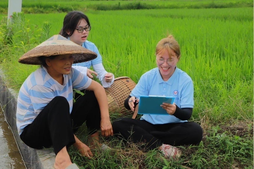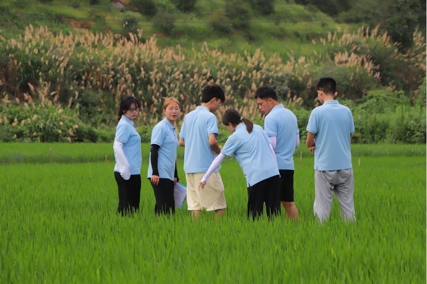 (团队在稻田间调研)