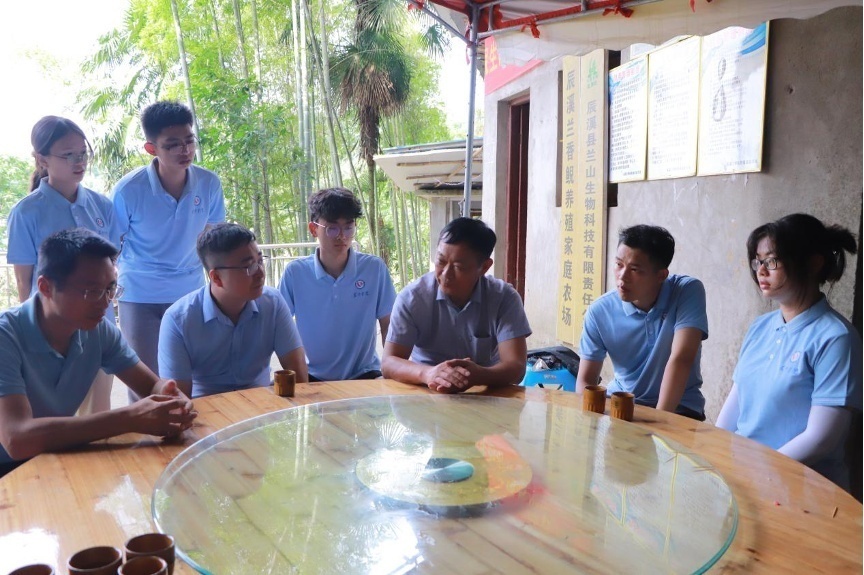 (团队成员在兰山生物科技有限责任公司听负责人讲解生态养殖知识)