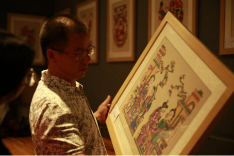 非遗中心廖主任向团队介绍滩头年画。