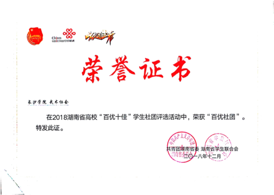 12月17日,由共青团湖南省委、湖南省学联共同主办的“社团王者”2018年度湖南省最受欢迎高校“百优十佳”学生社团网络推选活动颁奖典礼在湖南第一师范学院举行。经过网络投票和专家评审,最终我校学社联武术协会和明源国学社荣获全省“百优”社团。
