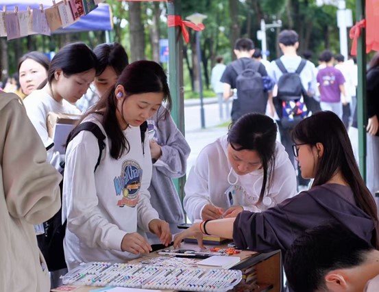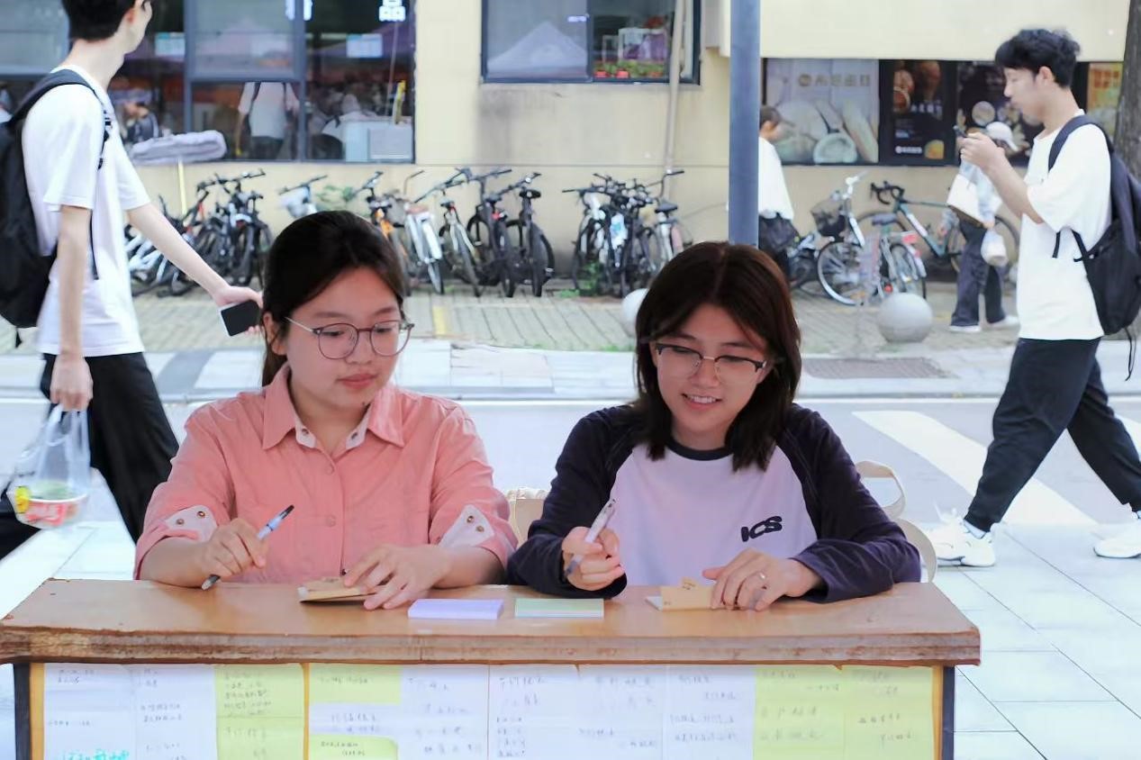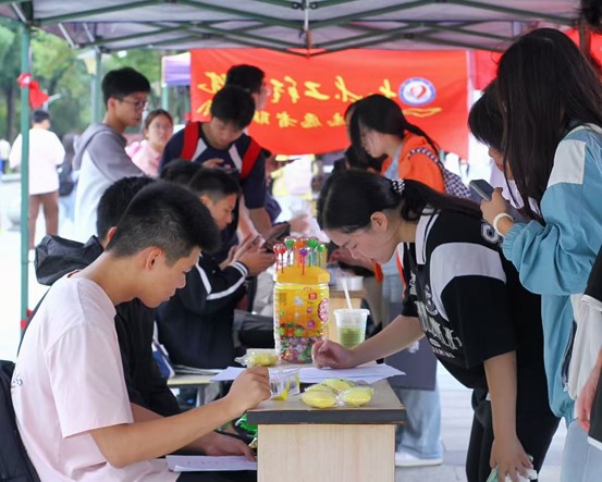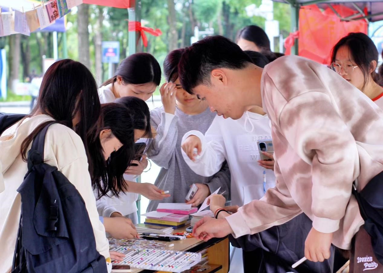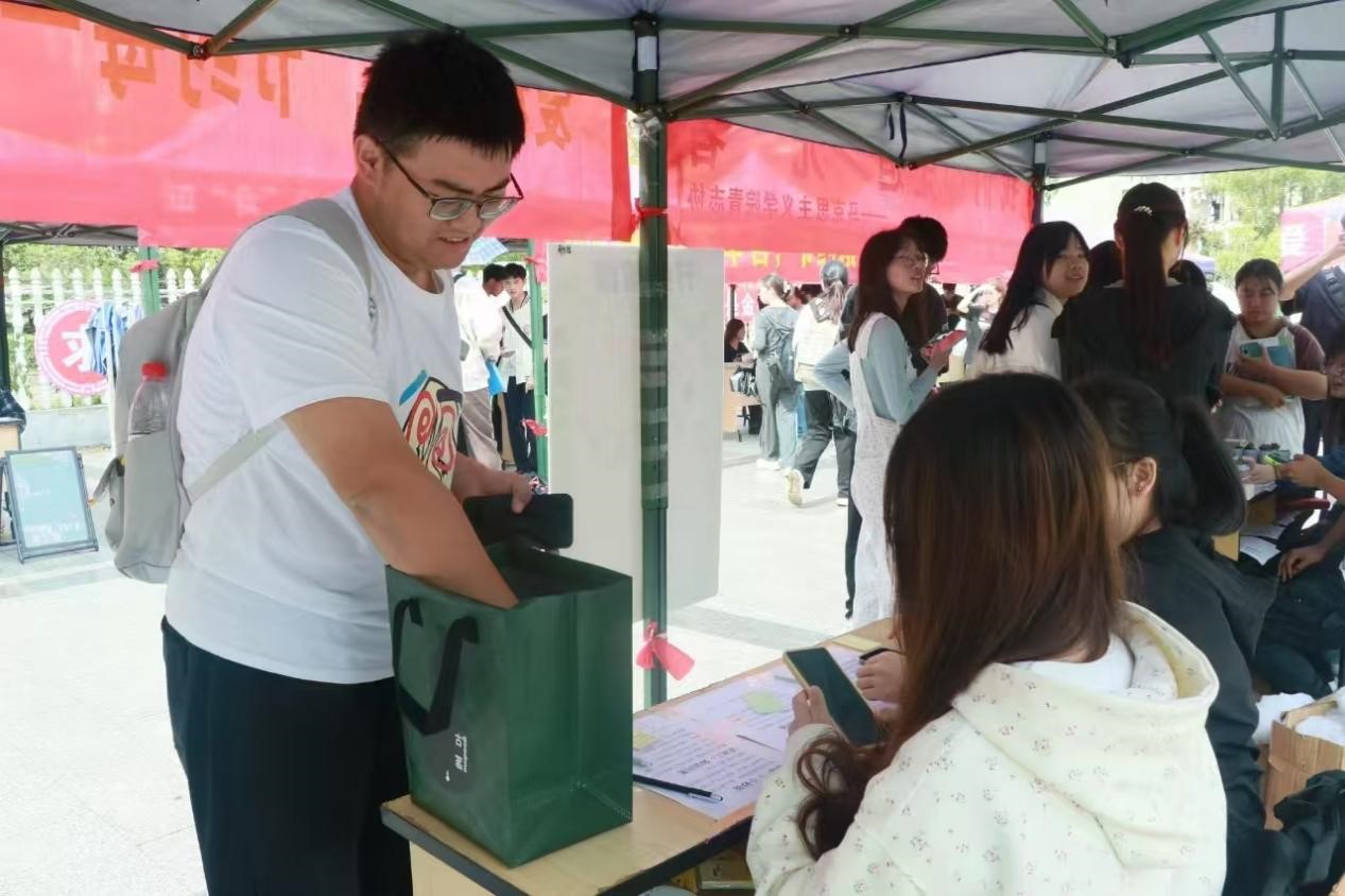 2、折纸递情。完成学院青年志愿者协会处做活动之后到总会特色立牌处拍照合影留念,再在纸卡上写下关于节约粮食的名人名言,将写好的纸卡折成千纸鹤的模样,由总会收集,挂至我们的摆点摊位上。可获得0.1分素拓。