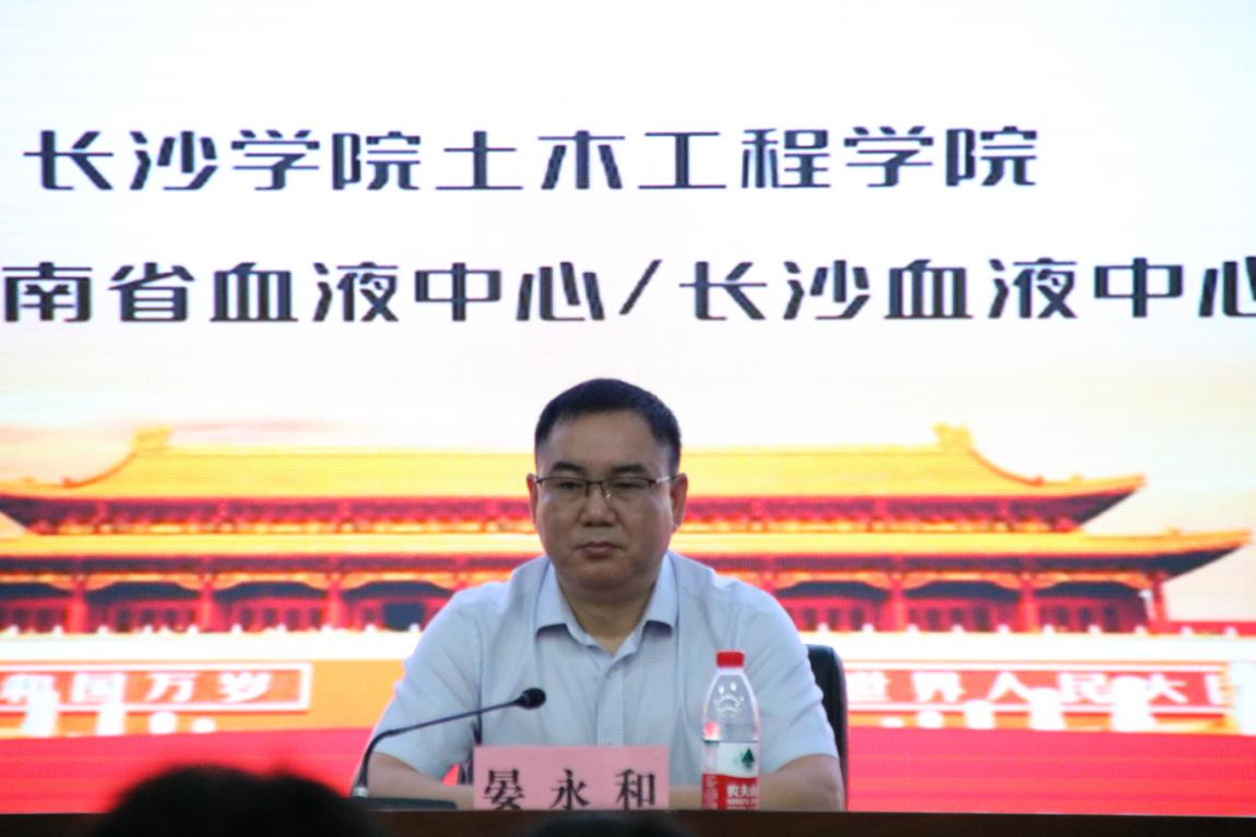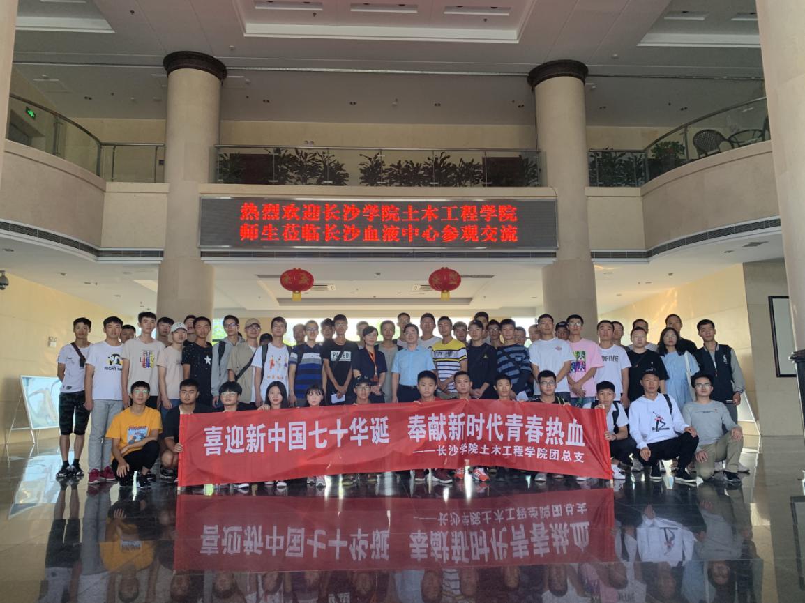 9月28日上午,长沙学院土木工程学院与湖南血液中心(长沙血液中心)共同举办的“喜迎新中国七十华诞,奉献新时代青春热血”成分献血活动在长沙市公共卫生中心举行。本次活动旨在秉持奉献社会的美好心态,号召当代青年积极参与公益献血活动,以实际行动践行“不忘初心、牢记使命”主题教育,以此来献礼新中国成立七十周年。省血液中心主任晏永和,学院党总支书记徐远超、团总支书记李晗出席活动仪式,该院70余名师生党员、入党积极分子及学生干部参加了活动。