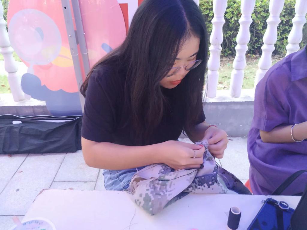 2018年9月10日—21日12:00—1:30和16:50-17:30,我们在汇泽食堂、二食堂、弘昱大道进行摆点,接收来自同学们有需缝补的军训服,并做好对衣物的保管和信息登记。积极为学生修补军训服,让每一个新生可以每天整装待发进行军训活动;以实际的行动为有需要的人带去力所能及的帮助,也提升新生对大学生活的好感度。