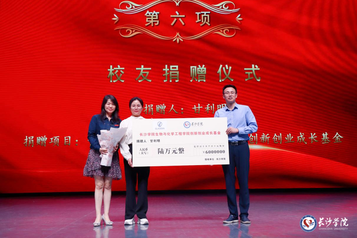 甘利明(中)回校设立“长沙学院生物与化学工程学院创新创业成长基金”