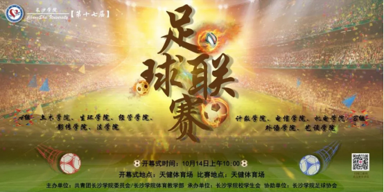 2018年10月13日,为了积极践行走下网络,走出寝室,走向操场的“三走政策”,增强学生身体素质,促进广大学生身心健康全面发展,在校园内营造良好的以球会友的校园足球文化及足球氛围,由共青团长沙学院委员会 、长沙学院体育教学部主办;长沙学院校学生会承办;长沙学院足球协会协办的第十七届足球联赛在天健拉开序幕。
