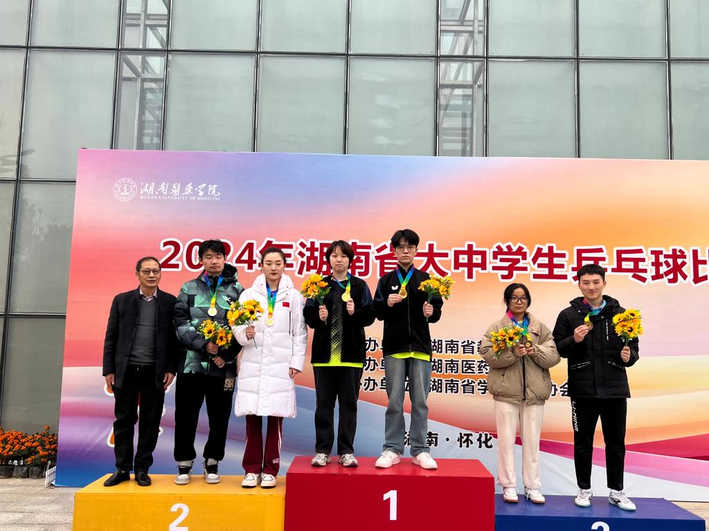2024年11月20日-11月26日,由湖南省教育厅主办,湖南医药学院承办的2024年湖南省大中学生乒乓球比赛在湖南医药学院体育馆隆重举行。本次比赛我校参赛队员均来自于团委指导下的乒乓球协会,由欧亿容教授担任领队,杨盼洁老师担任教练,共派出8名队员参赛。历经六天的激烈角逐,我校运动健儿们克服困难,奋力拼搏,坚持“球不落地,永不放弃”的体育精神,在学院甲组的7个项目中取得了两金一银的好成绩。为学校赢得了荣誉,彰显了长大学子的风姿!