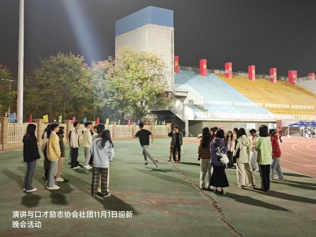2024年11月1日晚上19:00,演讲与口才励志协会于天健体育场举行社团迎新晚会,参会人员有社团会长、副会长、团支书、部长、新干事以及新会员共23人