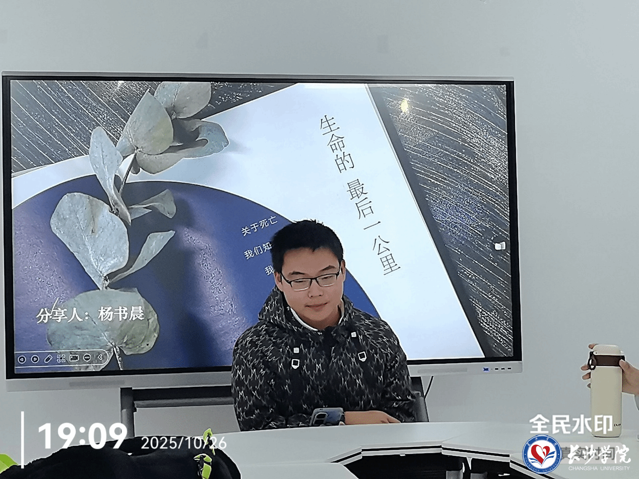 接下来是杨书晨同学分享其对于《生命中的最后一公里》的看法,他提出了一个全新的对生命及医疗的观点。这对在座的众人很有启发,于是在座的众人就医疗对人类的影响展开了激烈的讨论。