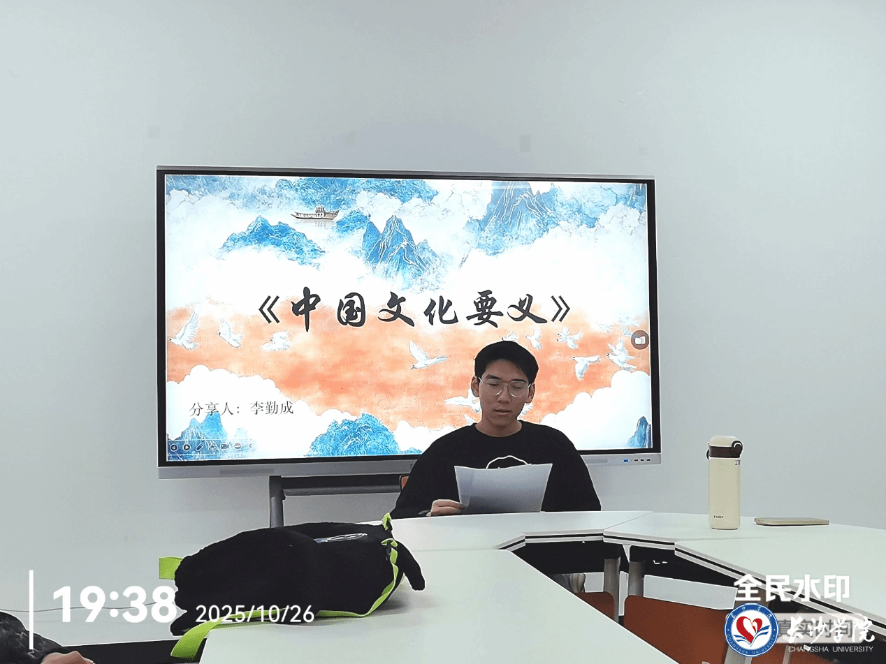 最后是李勤诚同学分享他对《中国文化要义》这本书部分章节的理解。他为大家讲述我们寻找人生的意义其实并不是在寻找答案,而是在寻找一个可以承载住生命厚重的载体。在座的每个人对人生的意义有不同的理解并进行交流学习。