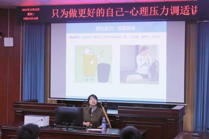 为切实关注大学生心理健康状态,引导同学们在成长中理性认识并正确应对心理压力,心理健康教育中心联合法学院成长辅导室,邀请国家二级心理咨询师谭鑫于10月22日下午,在涵虚楼A多1(模拟法庭)进行主题为“只为做更好的自己”的心理压力调适讲座。