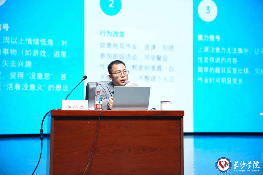本次课程涵盖了学生群体心理健康现状、焦虑抑郁信号识别、自我心理调适实用技巧、同学间简单干预与帮助方法、心理健康支持资源与行动承诺等五个部分的内容。作为“小橘灯”青少年心理健康志愿服务项目的主要负责人,陈旭东教授还以项目介绍为桥,向大学生们传递了服务青少年心理健康的热忱与力量。