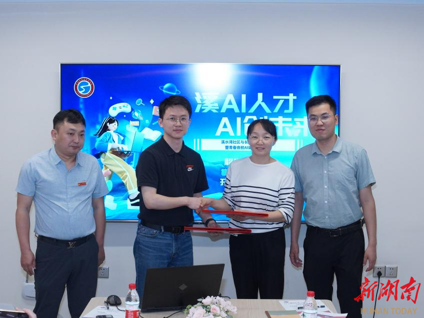 课堂开始前,在共青团开福区委副书记张超群、长沙学院团委副书记唐仁华及月湖街道党工委委员满一斐的共同见证下,长沙学院计算机科学与工程学院、溪水湾社区双方正式签署了合作协议。根据协议,溪水湾社区将作为“AI公益课堂”的举办地,免费向市民开放。长沙学院计算机科学与工程学院AI智创课堂志愿服务团队则负责提供高质量的AI教学服务。这一合作模式将原本“触不可及”的科技知识,带到了社区居民的身边,让更多人有机会近距离感受科技的魅力。
