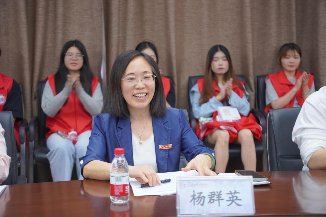 长沙学院土木工程学院党总支书记杨群英在讲话中介绍了学院青年志愿者工作的情况。她表示,土木工程学院将充分发挥专业优势,为明德金鹰学校的学生带来丰富的建筑桥梁科普实践课程和技能指导,同时为学院学生提供锤炼本领、服务社会的机会。