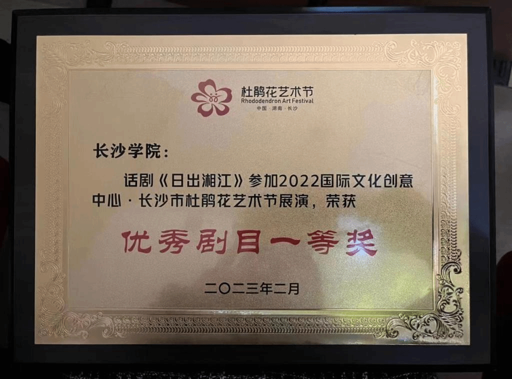 杜鹃花开满星城,艺术新秀耀九州。2月28日晚,“杜鹃花开·戏韵星城”国际文化创意中心·长沙市2022杜鹃花艺术节闭幕式暨颁奖晚会在长沙实验剧场举行,我校原创红色话剧《日出湘江》获评优秀剧目一等奖,是获奖作品中唯一一部由非专业艺术院团创作的艺术作品。