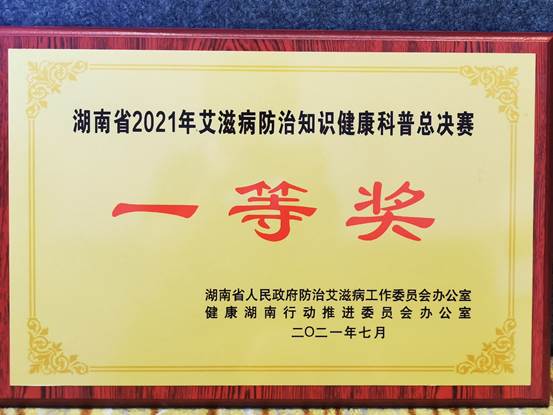 7月6日,“情系红丝带、共筑防艾梦”湖南省2021年艾滋病防治知识健康科普总决赛在长沙举行,由长沙市防病工作领导小组办公室选送,开福区疾病预防控制中心联合长沙学院校团委组织策划编排的科普宣传节目“红丝带访谈实录”,在众多优秀科普作品中脱颖而出,荣获冠军。