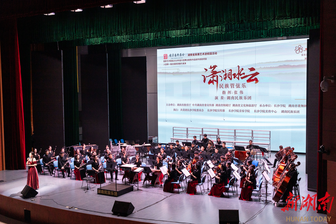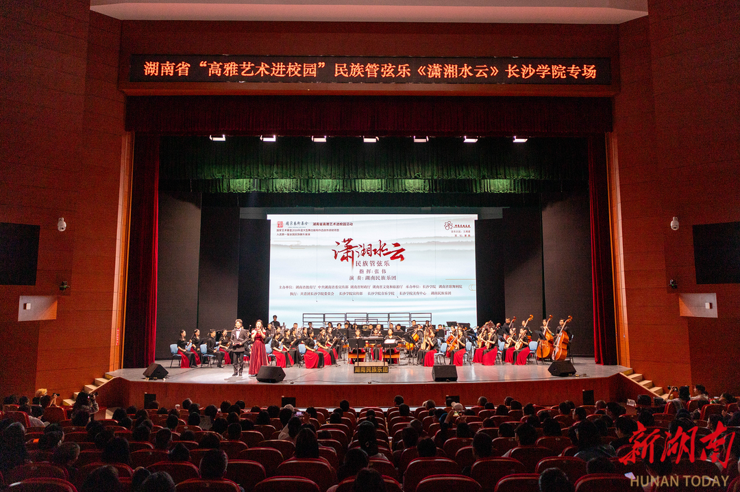 11月7日晚,湖南省“高雅艺术进校园”大型原创民族管弦乐《潇湘水云》在长沙学院学生活动中心大礼堂激情奏响,近千名师生一同观看演出。
