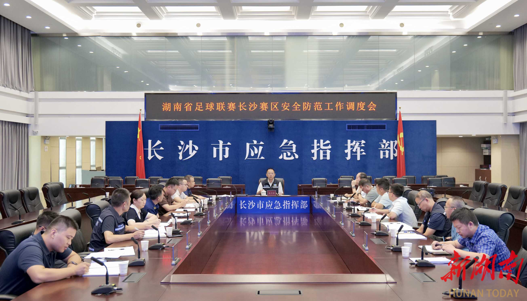 长沙市应安委办组织召开专题调度会,会商部署“湘超”长沙赛区安全防范与应急保障工作,实行全市一盘棋指挥调度,实现主赛场、第二现场与人员密集场所全面主动管控。