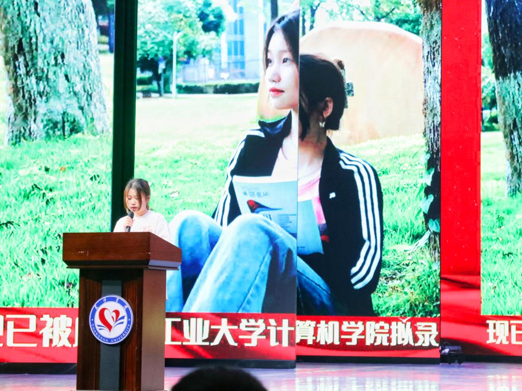 2019级物联网工程专业、国家奖学金获得者戴雅琦在大会上分享了自己的学习和成长经历。在生活里,她注重思想的进步和成熟,培养正确的人生观、价值观、和世界观,提高自己的思想政治素养。在学习上,她有着一丝不苟的态度,从不局限于课本知识,在广泛的学习中充盈自己的大脑。做好计划、实行与复盘,不断进步。同时,作为计科学院的学生,她告诉大家,一定要保持创新心态,持续进步。