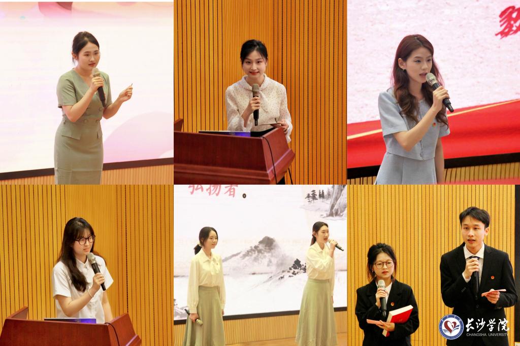 (活动现场)4月8日下午,长沙学院“学思践悟新思想,挺膺担当建新功——第四届‘团员青年说团课’竞赛展示活动”决赛在致远楼学术报告厅举行。经各学院团总支层层选拔把关,14名(组)院级决赛选手脱颖而出,他们以青年之视角和青年之表达,带来了一堂堂别开生面的精彩团课,现场气氛十分热烈。(选手依次登台宣讲)“青年许山河,青年勇担当,时代的课题召唤青年,历史的重任需要青年,前方是党旗飘飘,而这所飘所指,就是我...