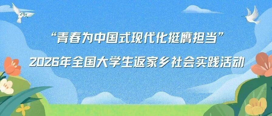 全国大学生“返家乡”社会实践,是共青团中央自2019年起常态化组织开展的实践活动,旨在引导大学生返回家乡参与实习实践,在基层受教育、长才干、作贡献。活动开展6年来,已经成为引领广大青年学子深入基层感知国情、开阔视野提升能力、认识家乡服务家乡的重要平台。 又是一年寒假到,奔赴家乡正当时。现面向全国高校学生正式启动2026年“返家乡”社会实践活动。有关事项通知如下。