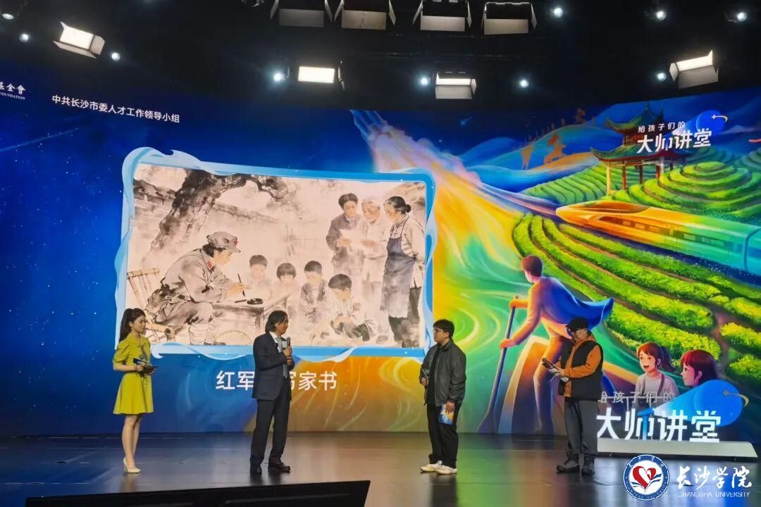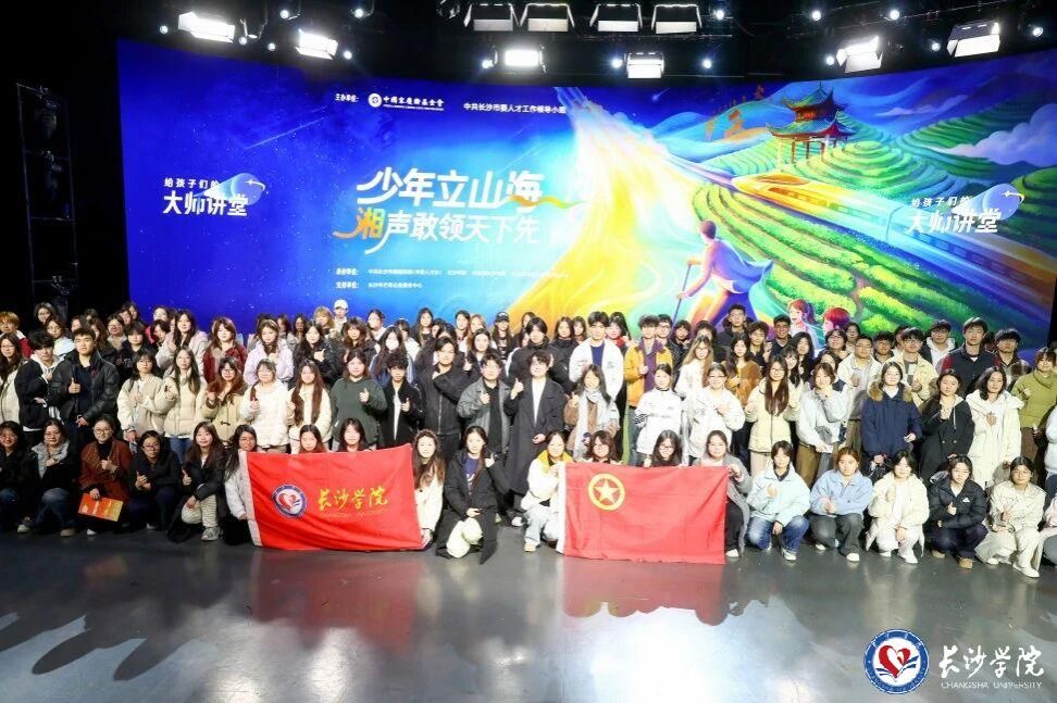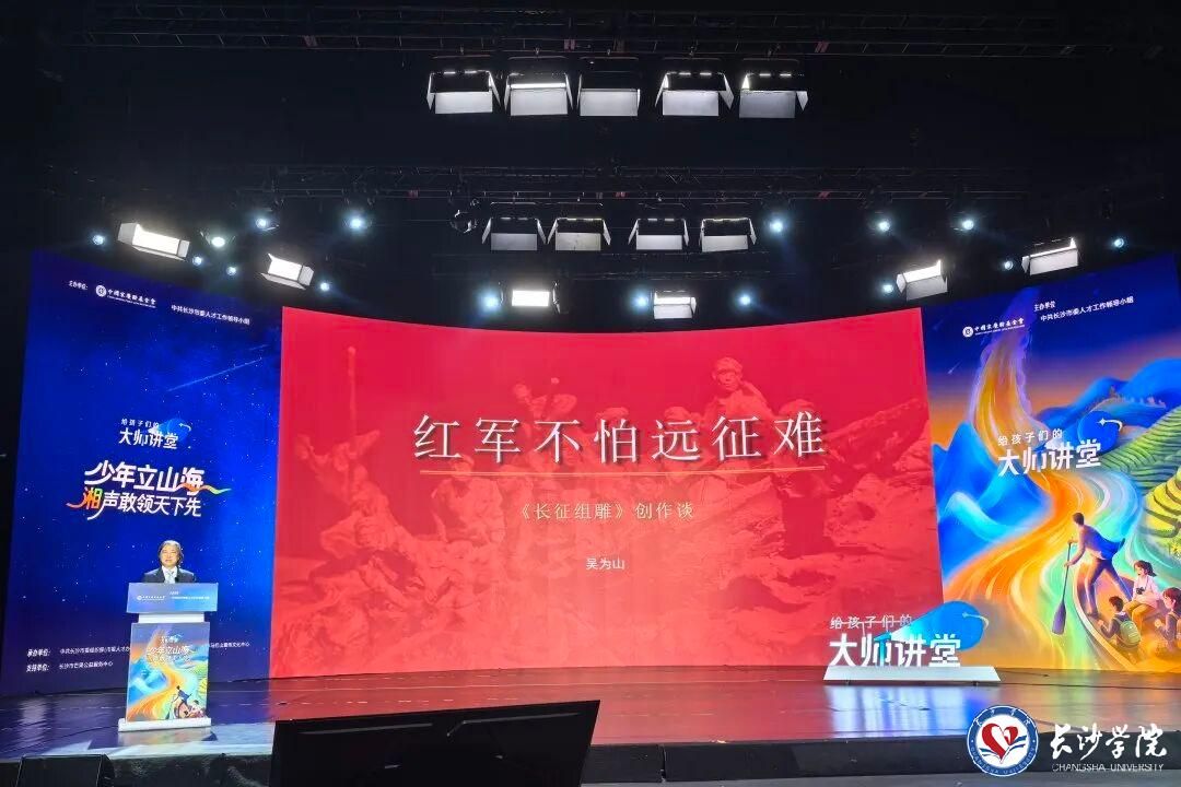 2026年3月23日上午9点,由中国宋庆龄基金会、中共长沙市委人才工作领导小组主办,我校联合承办的《给孩子们的大师讲堂》——“艺术刻度里的长征精神”主题活动,在马栏山视频文创产业园开讲。我校组织近200名马栏山新媒体学院、艺术设计学院学子,共同走进这场融合雕塑、影视与数字科技的沉浸式思政课堂,在艺术与科技的碰撞中感悟长征精神的时代力量。