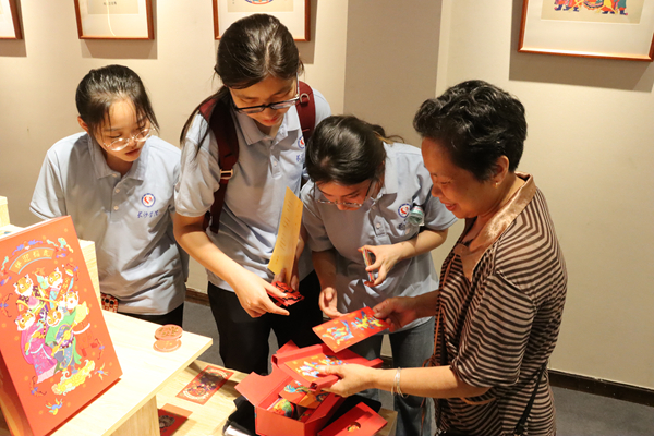 图为传承人尹冬香带团队成员体验年画制作工艺 赵嘉雯摄